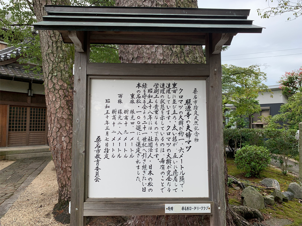 境内の金竜桜は一重と八重の花が同じ枝に同時に咲く珍らしい桜で、国指定の天然記念物に指定されていたが、枯死したので、指定は取り消された。現在は分植した木が育っている。また連理の松「夫婦マツ」(市指定文化財)がある。
