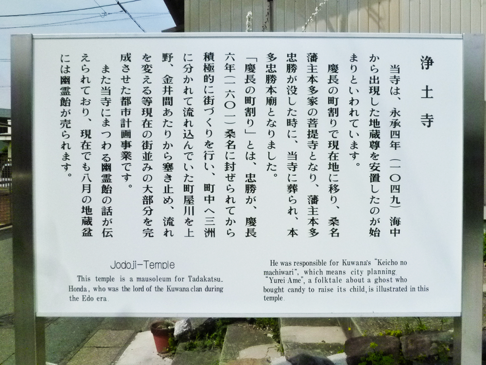 浄土宗。永承4(1049)年海上から出現した地蔵尊を安置したのが始まりといわれる。桑名の市街地では最初に出来た寺院と思われ、墓地には宝治元(1247)年に亡くなった贄氏目阿弥の墓がある。初代桑名藩主となった本多忠勝の墓(市指定文化財)がある。初代桑名市長・貝塚栄之助やその養子である貝塚茂樹などの貝塚家墓所がある。当寺にまつわる幽霊飴の話が伝えられ、毎年の地蔵盆の時に幽霊飴が売られる。